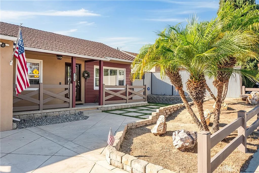 Welcome home to 22709 Gaycrest Avenue, a beautifully remodeled gem in the coveted Seaside Ranchos neighborhood of South Torrance. This 3-bedroom, 1-bathroom residence spans 1,064 square feet and is perched on a hill, offering breathtaking views of the lush green surroundings to the hills of Palos Verdes. The inviting front porch sets the tone for this home's charm, complemented by tastefully designed drought-resistant landscaping featuring palm trees and artificial turf for low maintenance.