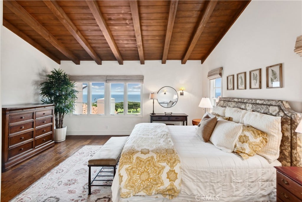 Welcome to this breathtaking turn-key 4 bed, 3 bath home offering unparalleled panoramic ocean views from Roessler Point to Malibu and the mountains beyond. Boasting exceptional curb appeal, the property is adorned with vibrant landscaping and a welcoming front porch—perfect for enjoying morning coffees and evening sunsets. Inside, the entryway leads you to a spacious great room featuring a gas fireplace for cozy nights indoors, and large sliding doors that frame the expansive ocean views. Opposite the great room is the reimagined open-concept living area where the raised ceilings enhance the perfectly designed gourmet kitchen, which is equipped with top-tier amenities. The spacious dining area, illuminated by dual chandeliers, seamlessly connects to the rear yard. An exquisite office alcove, surrounded by windows, captures sweeping ocean views, making it an ideal workspace. Upstairs, the luxurious primary suite offers stunning ocean views, a spacious walk-in closet, and a spa-like bathroom. The upper level is complete with three additional bedrooms, a main bathroom, and ample storage space. The lushly landscaped, sanctuary-like rear yard is designed for entertainment and features a built-in cooking station, seating area, and fire pit—perfect for enjoying the soothing evening breezes. Situated in the hidden gem of Malaga Cove, this home is part of a vibrant community rich in history and culture. Enjoy the amenities of the historical Malaga Cove Plaza, local library, summer park concerts, annual block parties, prestigious clubs - PV Golf Club, Beach & Athletic Club, PV Tennis Club, miles of hiking trails, and the sun-soaked RAT Beach. Just one and a half miles from the Riviera Village, to indulge in fine dining and shopping experiences. Watch sailboats drift by and witness stunning sunsets. Make this exceptional home in the highly sought-after lower Malaga Cove neighborhood yours and enjoy the 60th Annual PV Old-Fashioned 4th of July Celebration, featuring family-friendly activities, at the historic Malaga Cove School. * * See Remodel-Features Sheet in Supplements